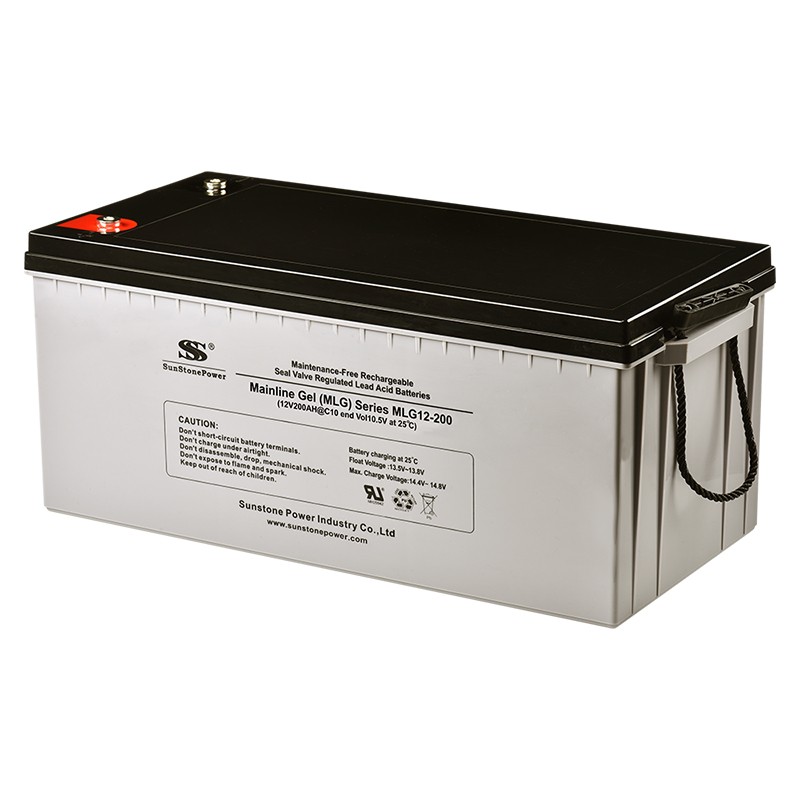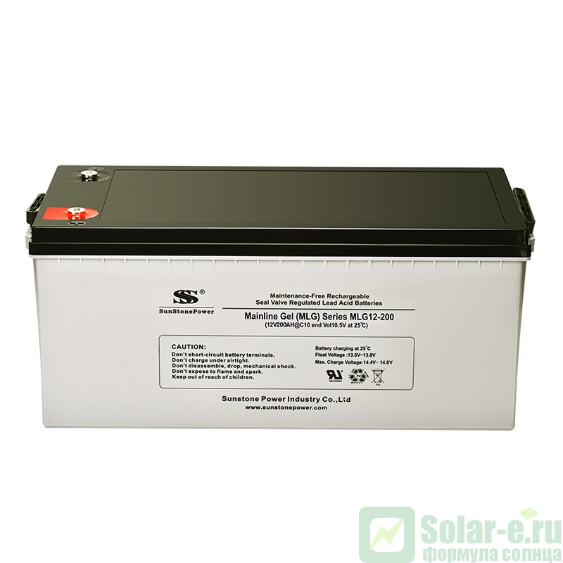 Гелевый тяговый аккумулятор SunStonePower MLG 200Ач 12В серии MLG это тяговый аккумулятор глубокого разряда ( deep cycle ) используемый в качестве источника питания в системах как автономного так и резервного электроснабжения, а так же лодочных моторов и любых других электродвигателей с напряжением 12 Вольт. Данный аккумулятор зарекомендовал себя как надежный аккумулятор для систем резервного электроснабжения и для работы в системах электропитания на солнечных батареях. Компания Технолайн ( e-solarpower.ru ) использует данные аккумуляторы с 2012 года, их безотказная работа стала основной причиной по которой мы рекомендуем именно эти аккумуляторы.В гелевых аккумуляторах в качестве сепаратора между свинцовыми пластинами применяется силикагель, которым заливается пространство между пластинами в процессе производства. Силикагель после застывания представляет собой твердое вещество с огромным количеством пор, в которых удерживается электролит. Благодаря тому, что силикагель полностью занимает пространство между пластинами, в гелевых аккумуляторных батареях практически невозможно осыпание свинцовых пластин и как следствие, закорачивание и выход из строя.