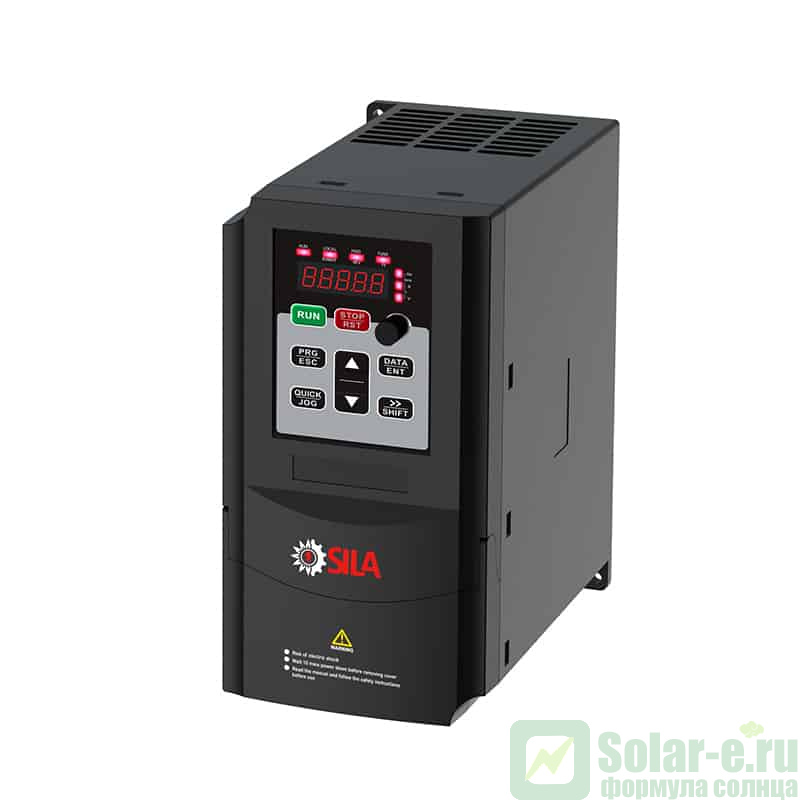 Однофазный частотный преобразователь SILA A2.2G-S2 управляет частотой оборотов электродвигателя мощностью 2.2 кВт.