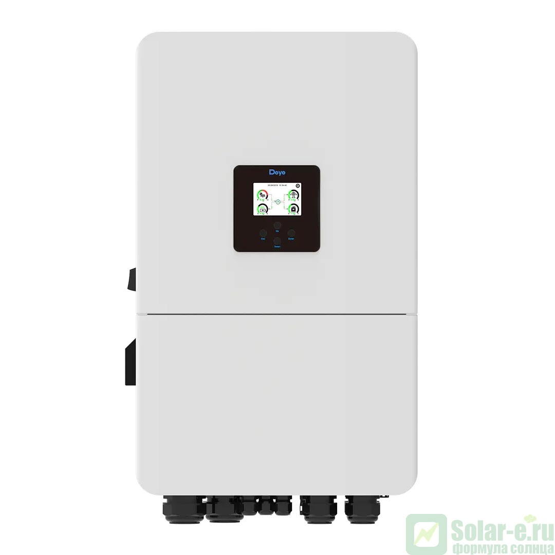 Гибридный трехфазный DEYE SUN-15K-SG05LP3-EU-SM2 мощностью 15 кВт это высокотехнологичный многофункциональный инвертор/зарядное устройство, в котором сочетаются функции инвертора, контроллера заряда аккумуляторов от солнечных батарей и зарядного устройства аккумуляторных батарей от сети или генератора, для обеспечения бесперебойной подачи питания, с возможностью выбора приоритетов зарядки и нагрузки. Используется в солнечных электростанциях и системах бесперебойного питания.