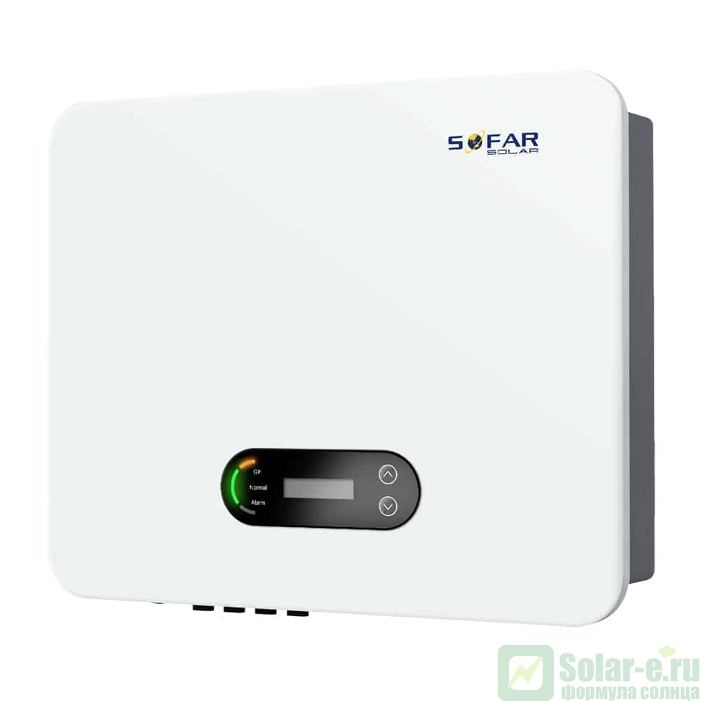 Сетевой солнечный инвертор SOFAR 20000KTLX-G3P 3-фазы мощностью 20 кВт это современный и высокоэффективный трехфазный фотоэлектрический сетевой инвертор второго поколения с двумя MPPT контроллерами и увеличенной входной мощностью от СБ. Данный инвертор полностью подходит для построения гелиосистемы для экономии и продажи электроэнергии в сеть ( объекта микрогенерации ). Инверторы серии KTLX имеют уникальную встроенную функцию - возможность снижения мощности по команде делимитера (устройства, отслеживающего передачу электроэнергии в сеть). Датчики делимитера устанавливаются перед счетчиком, если определяется отдача электроэнергии в сеть, делимитер дает команду инвертору снизить вырабатываемую мощность. Тем самым предотвращается отдача электроэнергии в сеть (очень часто российские счетчики считают отданную электроэнергию как потребленную). Сетевой инвертор используется только совместно с городской сетью, принцип его работы заключается в подмешивании ( добавлении) энергии вырабатываемой солнечными батареями в вашу сеть для обеспечения дополнительной нагрузки или экономии. К примеру, если текущее потребление на вашем объекте 20 кВт*ч, а солнечные батареи вырабатывают 15 кВт*ч, то из городской сети вы возьмете всего 5 кВт*ч, а остальные 15 кВт*ч в вашу сеть вольет сетевой инвертор.