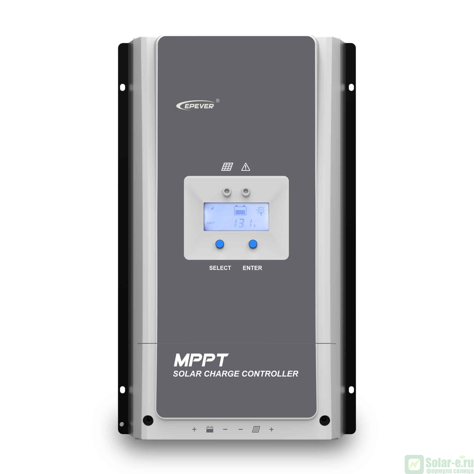 Контроллер заряда Epever Tracer 10420AN 100A MPPT это высокомощный контроллер заряда аккумуляторов от солнечных батарей с двух ядерным процессором и возможностью параллельного подключения до 6 устройств с выбором параметра Master/Slave для увеличения суммарной мощности системы. Данный контроллер способен работать с массивом аккумуляторов напряжением 12, 24, 36 и 48 Вольта. Благодаря большому алюминиевому радиатору расположенному на всей площади задней поверхности контроллера, он способен работать даже в условиях ограниченной вентиляции воздуха и высокой температуре окружающей среды. Контроллеры данной серии оснащены удобным дисплеем для настройки и отображения параметров работы. Передовой алгоритм заряда MPPT, позволяет данному контроллеру моментально находить точку максимума при любых погодных условиях и использовать полный потенциал солнечной батареи.
