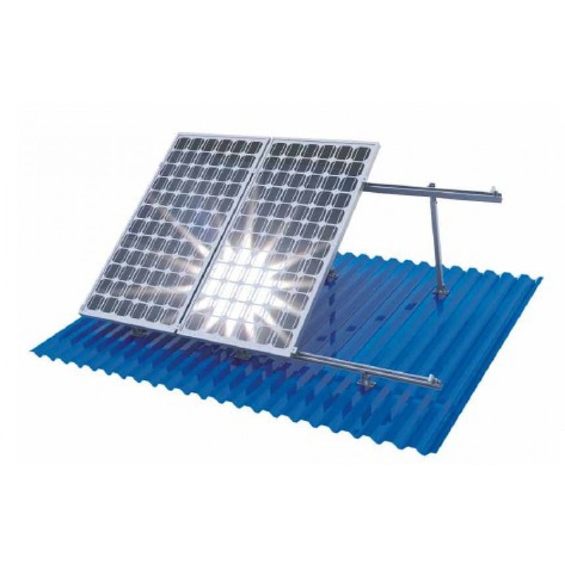Данный комплект предназначен для монтажа солнечных батарей на плоской или наклонной поверхности (земле, крыше из мягкой черепицы либо металлочерепицы) в один ряд. Регулируемый угол наклона ( от 30 до 60 градусов ), позволяет эффективней использовать батареи, за счет изменения площади воздействия прямых солнечных лучей.