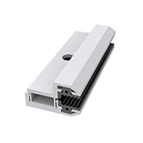 Концевой зажим для крепежа стеклянных солнечных модулей без рамы ( dual glass ) к направляющей рейке.