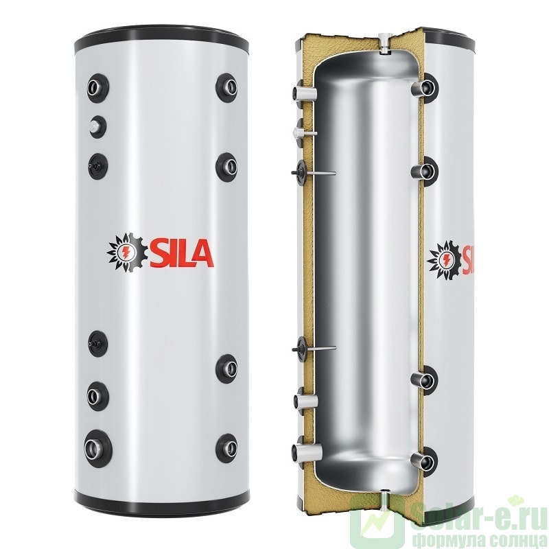Бак SILA SST-500 предназначен для использования с тепловым насосом. Чтобы компрессор теплового насоса мог работать долго и безотказно, ему необходимо обеспечить ровную нагрузку без существенных пиковых скачков теплоснабжения. Это важно для своевременной передачи генерируемого тепла дальше в систему отопления. В противном случае возможно неконтролируемое повышение давления и возможны поломки. Для каждого теплового насоса установлен минимальный объемный расход. Он всегда указывается в сопроводительной документации. Минимально необходимый объемный расход определяется максимальной производительностью теплового насоса. Воздушно-водяные тепловые насосы компании SILA имеют минимально необходимый расход равный 3 л на 1 кВт отопительной мощности. Когда объем теплоносителя в отопительном контуре не является достаточным для обеспечения условия минимального расхода - используется буферная емкость.